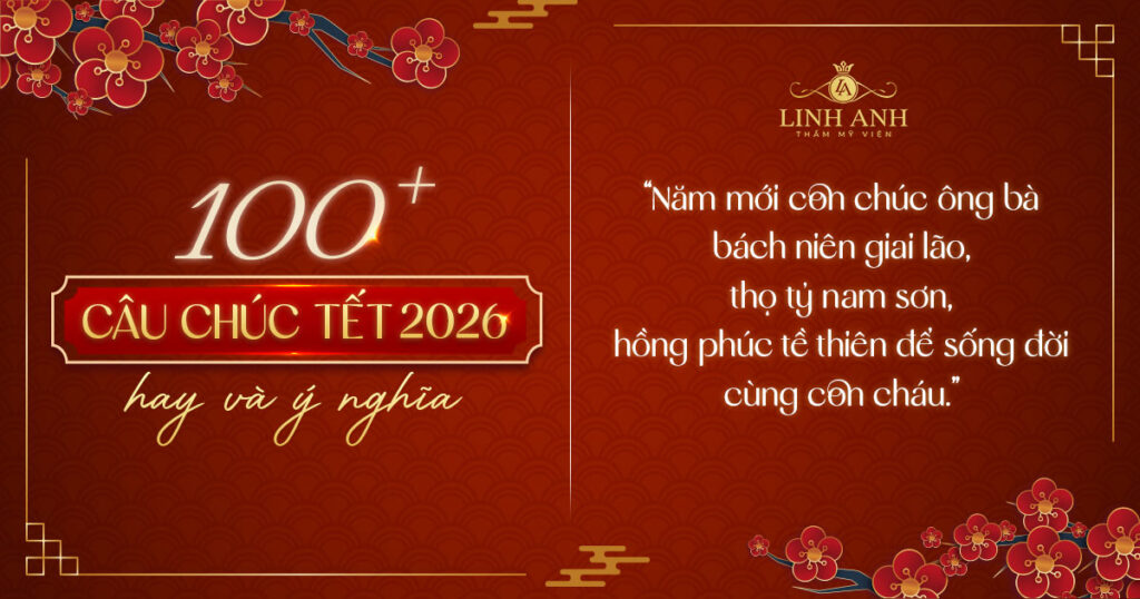 Trên đây là tổng hợp 100+ câu chúc Tết 2026 mang nhiều ý nghĩa, độc đáo, hài hước. Thẩm mỹ Quốc tế Linh Anh chúc mọi người và gia đình sẽ có một mùa xuân Bính Ngọ 2026 tràn ngập tiếng cười, an khang thịnh vượng và tiền tài đầy túi. Bỏ qua những chuyện buồn của năm cũ để đón chờ một năm mới với nhiều may mắn.