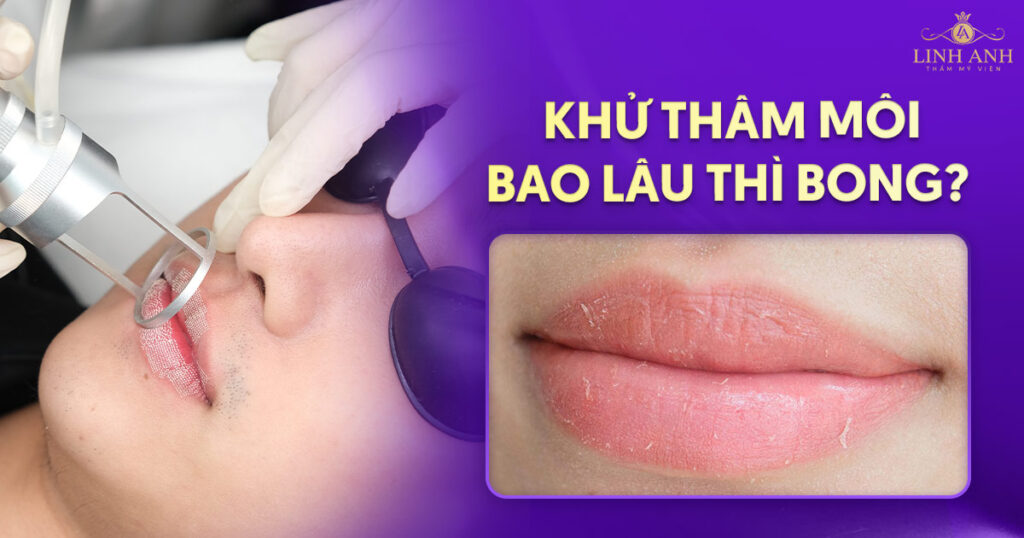 Trưởng phòng phun xăm Phạm Thị Hồng Trinh tại Thẩm mỹ Quốc tế Linh Anh trả lời câu hỏi này như sau: “Sau khi khử thâm môi, lớp vảy mỏng sẽ bắt đầu bong trong khoảng 3–7 ngày. Trong giai đoạn này, môi có thể chuyển sang màu sậm hơn từ 10 ngày đến 1 tháng trước khi ổn định và lên màu chuẩn đẹp nhất sau 1–2 tháng.”