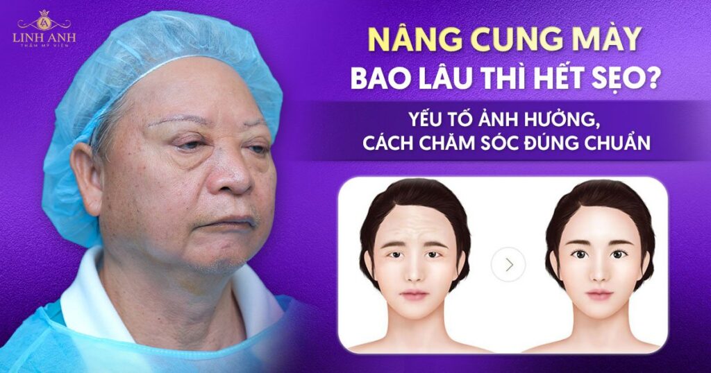 Quá trình nâng cung mày bao lâu thì hết sẹo có thể khác nhau tùy thuộc vào nhiều yếu tố. Sau nâng cung mày, sẹo sẽ mờ dần theo thời gian chứ không biến mất ngay. Trong vài tuần đầu, vết mổ khép miệng và giảm sưng. Sau vài tháng, sẹo dần phẳng, tiệp màu da và ngày càng khó nhận thấy. Khoảng 6–12 tháng, sẹo thường mờ gần như hoàn toàn và kết quả thẩm mỹ ổn định.